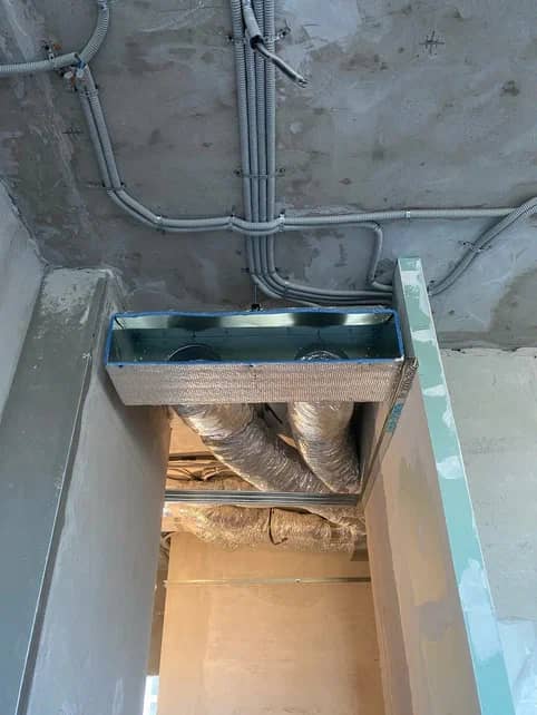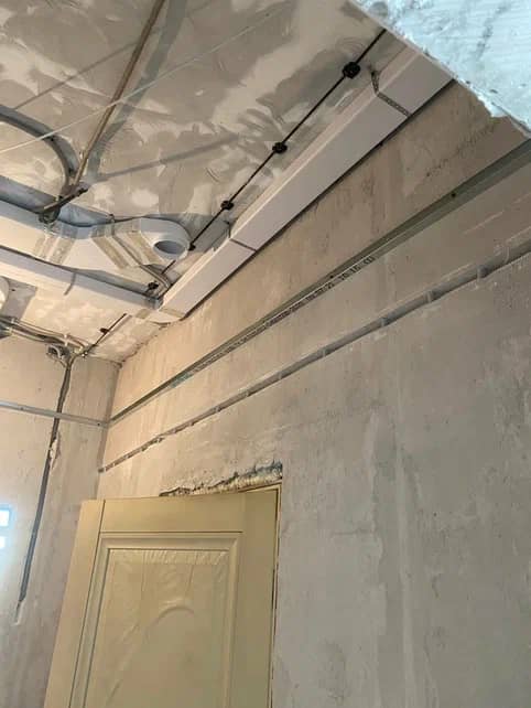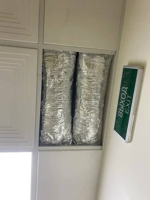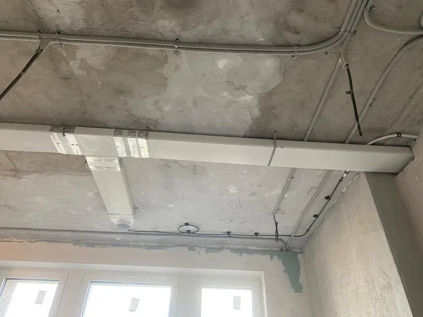 Для распределения охлажденного воздуха по помещениям использовались специальные тонкие воздуховоды. Они требуют минимального пространства для монтажа, что позволяет уменьшить высоту подвесного потолка и сохранить пространство.