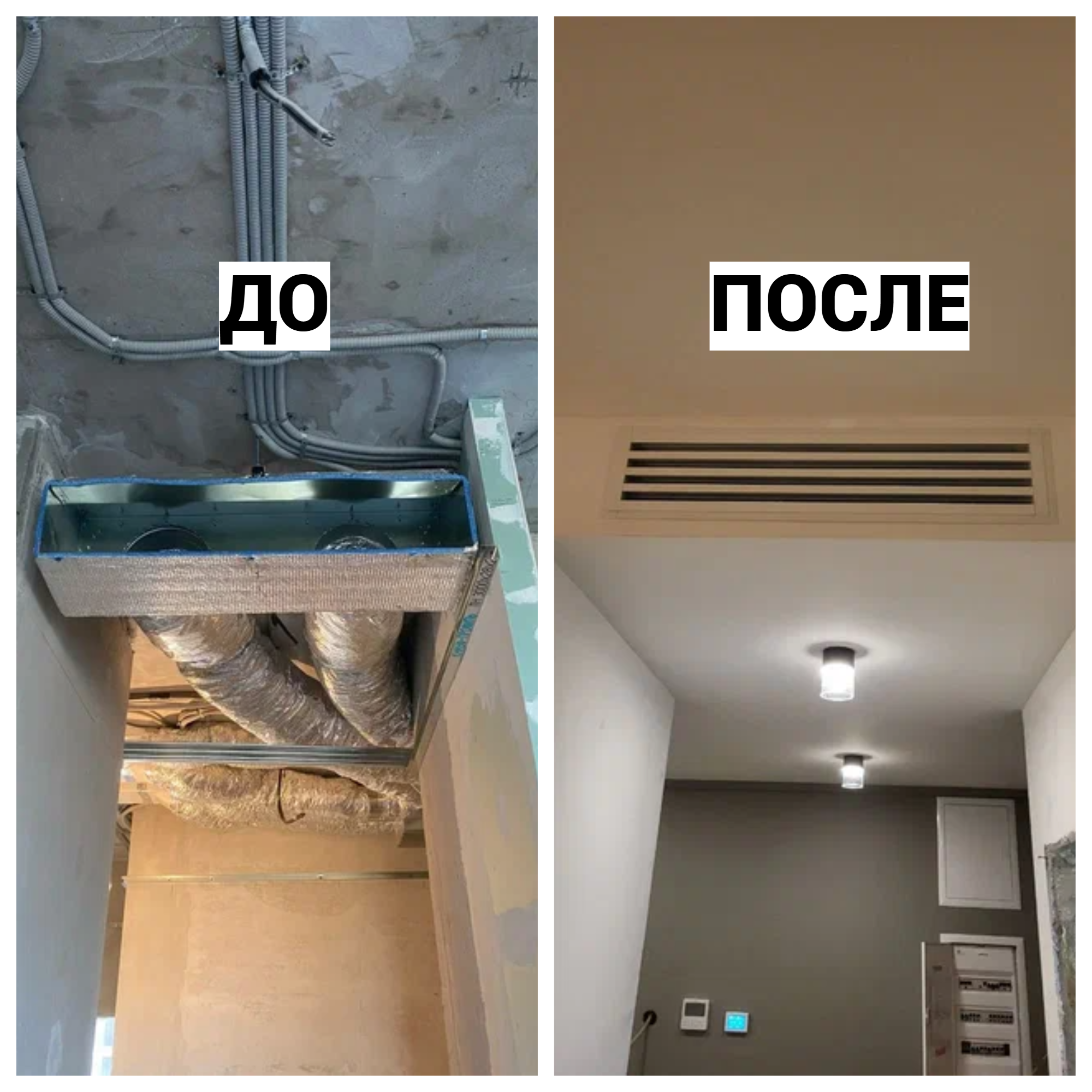 В квартире была реализована комплексная климатическая система премиум-класса. Совместная работа приточно-вытяжной вентиляции и канального кондиционера, обеспечивает не просто охлаждение, а полноценный здоровый микроклимат: постоянный приток свежего воздуха, его очистку, комфортную температуру и бесшумность